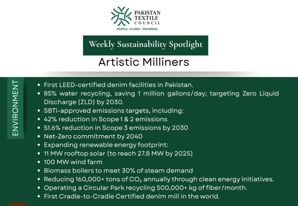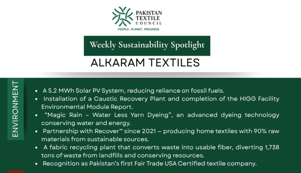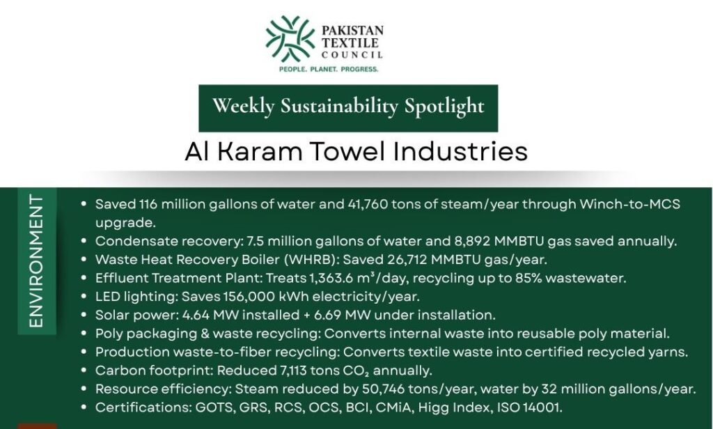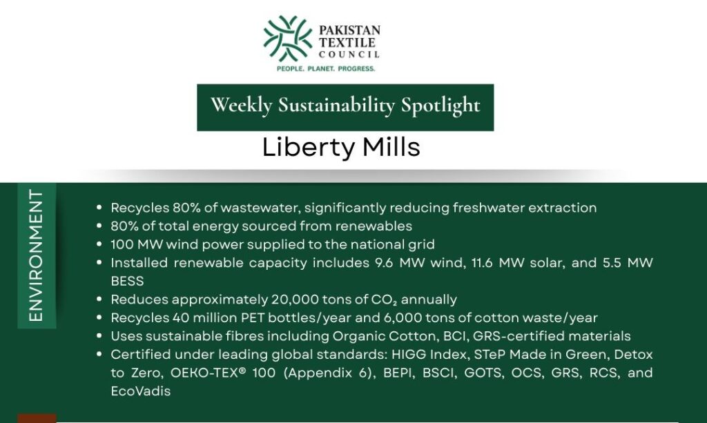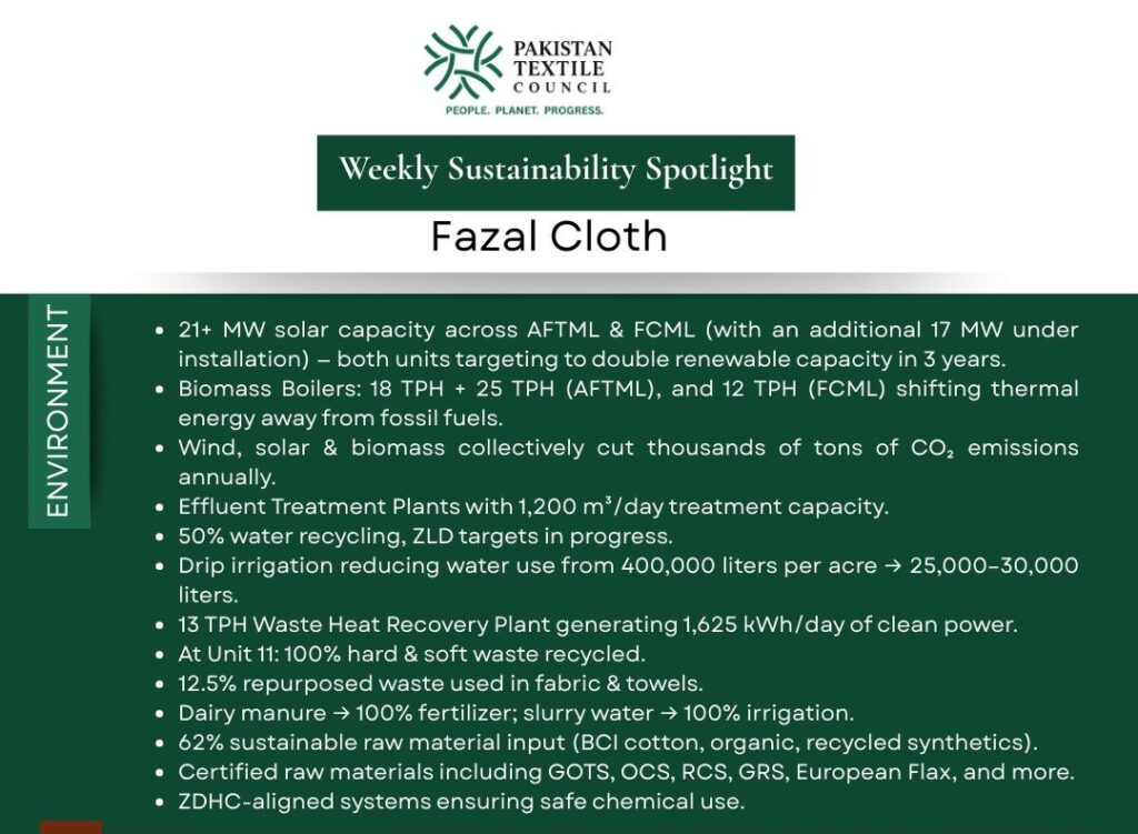 The Pakistan Textile Council (PTC) continues its weekly series spotlighting the Environmental, Social, and Governance (ESG) excellence of our member companies.