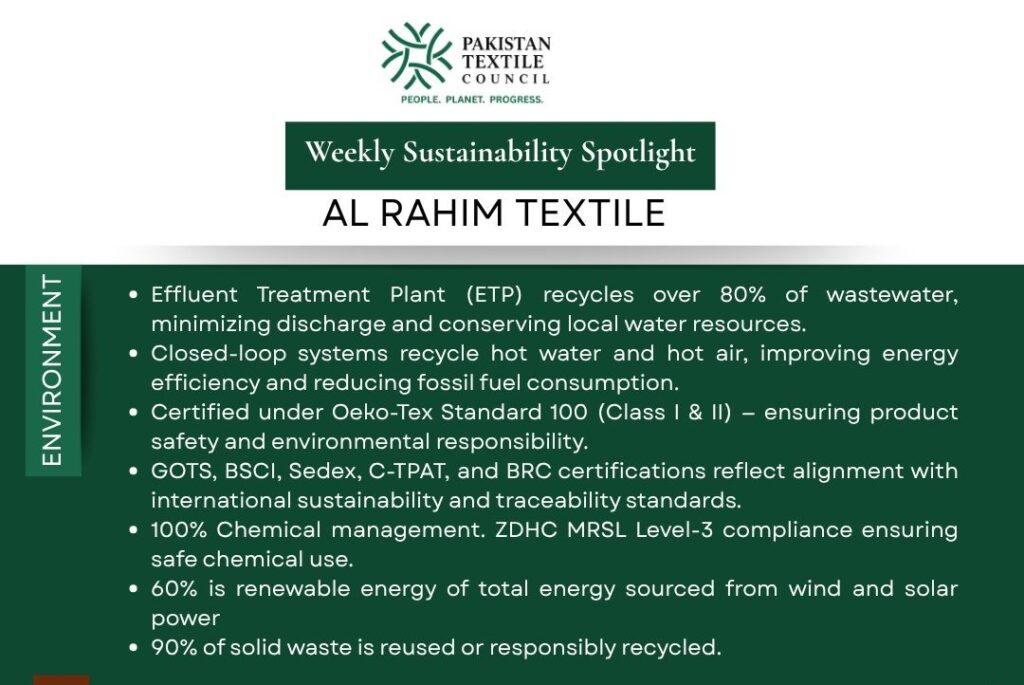 Al Rahim Textile continues to demonstrate how sustainability and responsibility can converge to power Pakistan’s textile transformation.