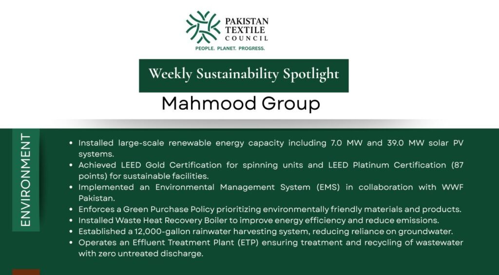 This week, Pakistan Textile Council highlights Mahmood Group, a leading example of how sustainability, social investment, and governance excellence can operate hand-in-hand.
