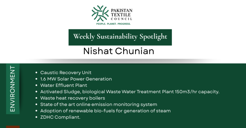 This week, Pakistan Textile Council highlights Nishat Chunian Limited (NCL), a company embedding sustainability across operations through resource efficiency, social investment, and strong governance frameworks.