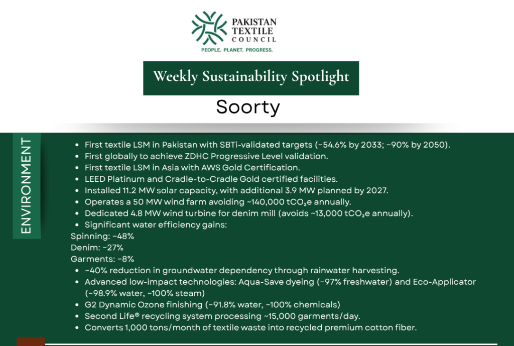 This week, Pakistan Textile Council highlights Soorty, a global leader in sustainable denim, setting new benchmarks in climate action, circularity, and social inclusion.